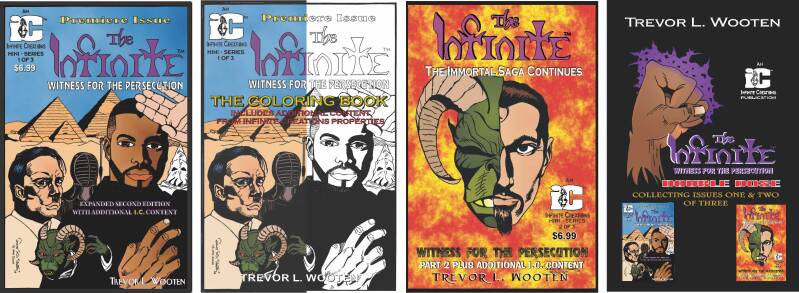 The Infinite is a continuing graphic novel saga written and fully illustrated by me. It chronicles the life and adventures of, immortal, Jonathan Steele and his sect. The Infinite were created by God in ancient times as a first line of defense against supernatural evils. The first storyline, Witness for the Persecution, introduces the character and his conflicts. The first issue of the series was premiered on May 6, 2017 (Free Comic Book Day) at World's Coolest Comics and Toys in Greenville, NC. After that date, it was made available in expanded print form and digitally on Amazon.com,BarnesandNoble.com and wherever books are sold. E-books are available on every digital platform, including Comixology. Issue number two; a Double Dose issue, collecting issues one and two; and the Issue One Coloring Book are now available.